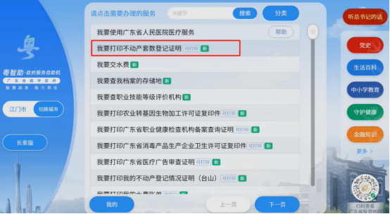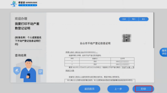 答:“粤智助”政府服务自助机新上线“不动产登记信息证明打印”以及“个人或家庭名下不动产登记信息证明打印”服务,可实现五邑地区内不动产登记信息的查询和打印。