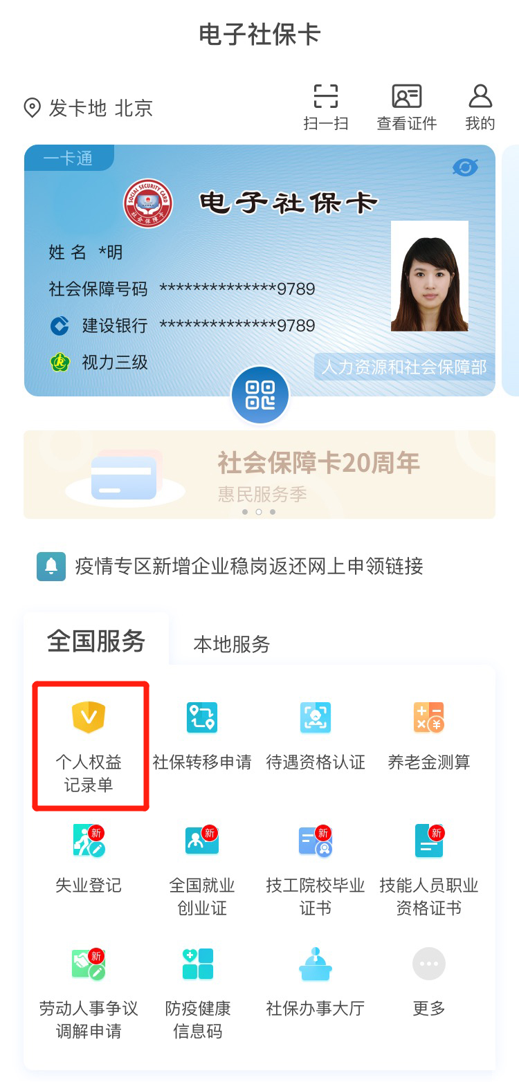 如何通过电子社保卡查询社会保险个人权益记录单?