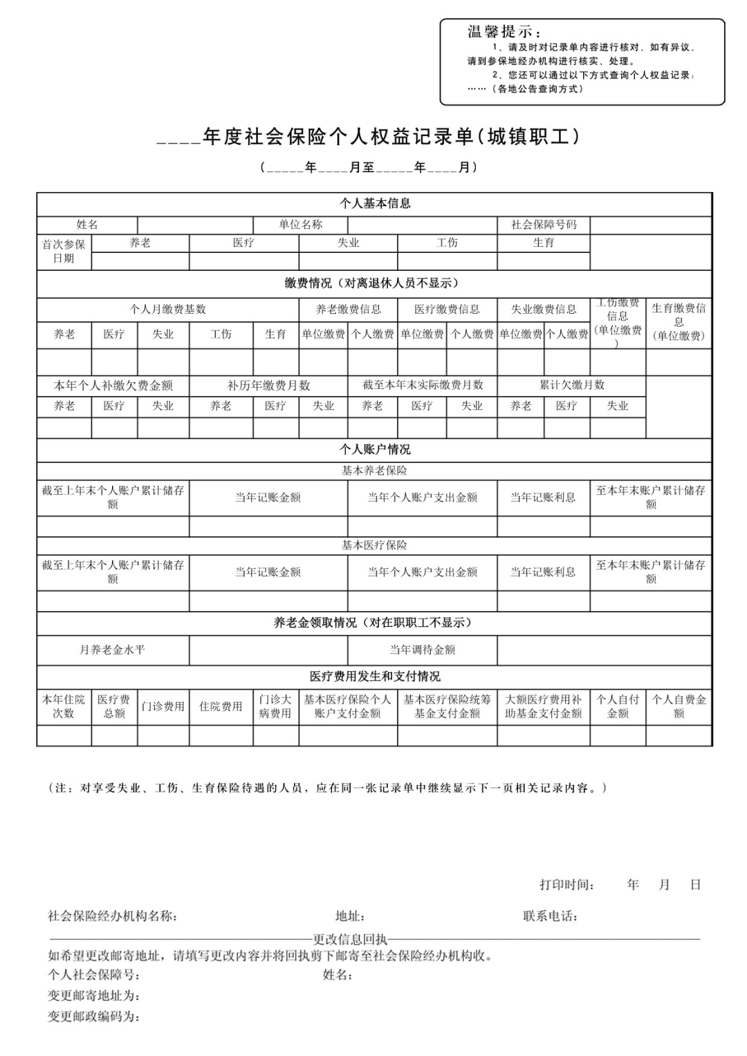 以城镇职工社会保险个人权益记录单为例: