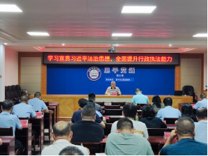 为深入学习领会习近平法治思想,切实把习近平法治思想贯彻落实到全面推进严格规范公正文明执法全过程,5月20日,市交通运输局在局七楼会议室召开深入践行习近平法治思想,全面提升行政执法能力专题会议。局党组书记黎晓辉作学习动员部署,各执法大队、业务股室及下属单位党员及执法人员共57名参加。