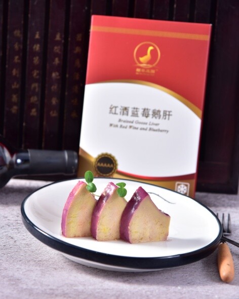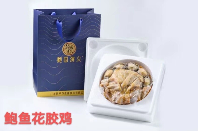 (图为牛江镇企业——撩能公司生产的鹅肝与鲍鱼花胶鸡预制菜。)