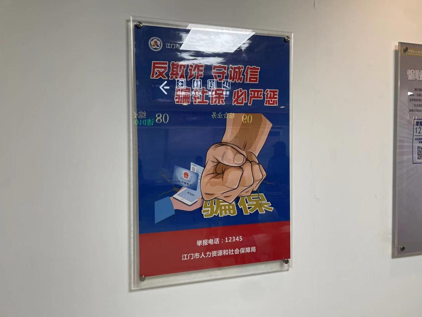 在社保服务大厅悬挂宣传海报