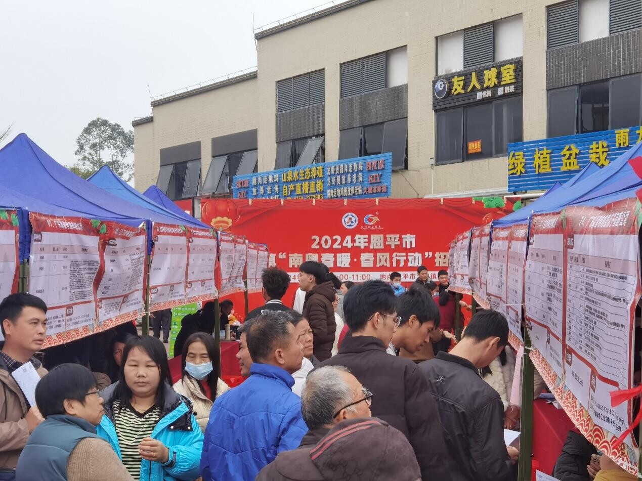 为保障节后企业用工需求,帮助企业与求职者搭建人力资源沟通合作的平台,促进就业资源的共享与流动。2024年2月19日—3月13日,恩平市2024年南粤春暖暨春风行动现场招聘活动火热开展,采用“1+N”的招聘模式,以恩平市区冯如广场为主场,同时在横陂、大槐、沙湖、东成4个乡镇举办专场活动,形成城乡联动、各具特色的招聘格局。