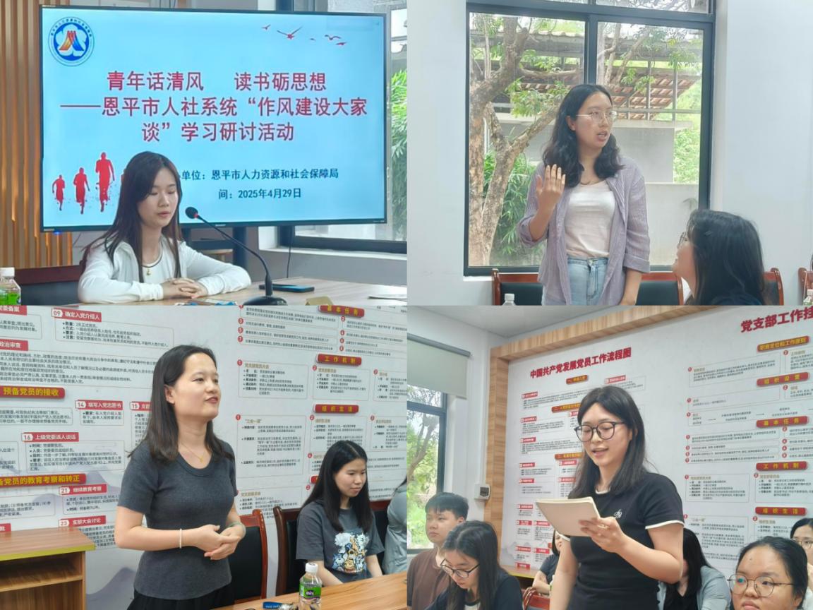 在学习会结束后,围绕作风建设这一主题,各青年结合人社业务实际,展开了热烈的研讨。青年们畅所欲言,分享自己在工作中遇到的问题以及对作风建设的思考。