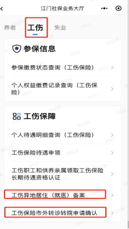 方式二:打开“广东省政务服务网”(网址:https://www.gdzwfw.gov.cn/)并登录→选择“个人服务”→选择“社保”→选择“工伤保险”→选择“工伤保险市外转诊转院申请确认/工伤异地居住(就医)备案”→按系统提示上传资料。
