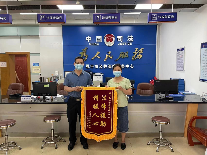 近日,受援人甄女士把一面印着“法律援助,情暖人心”的锦旗送到恩平市公共法律服务中心,衷心感谢恩平市法律援助处以高度负责的工作热情和优质高效的敬业精神帮助她排忧解难,维护合法利益。