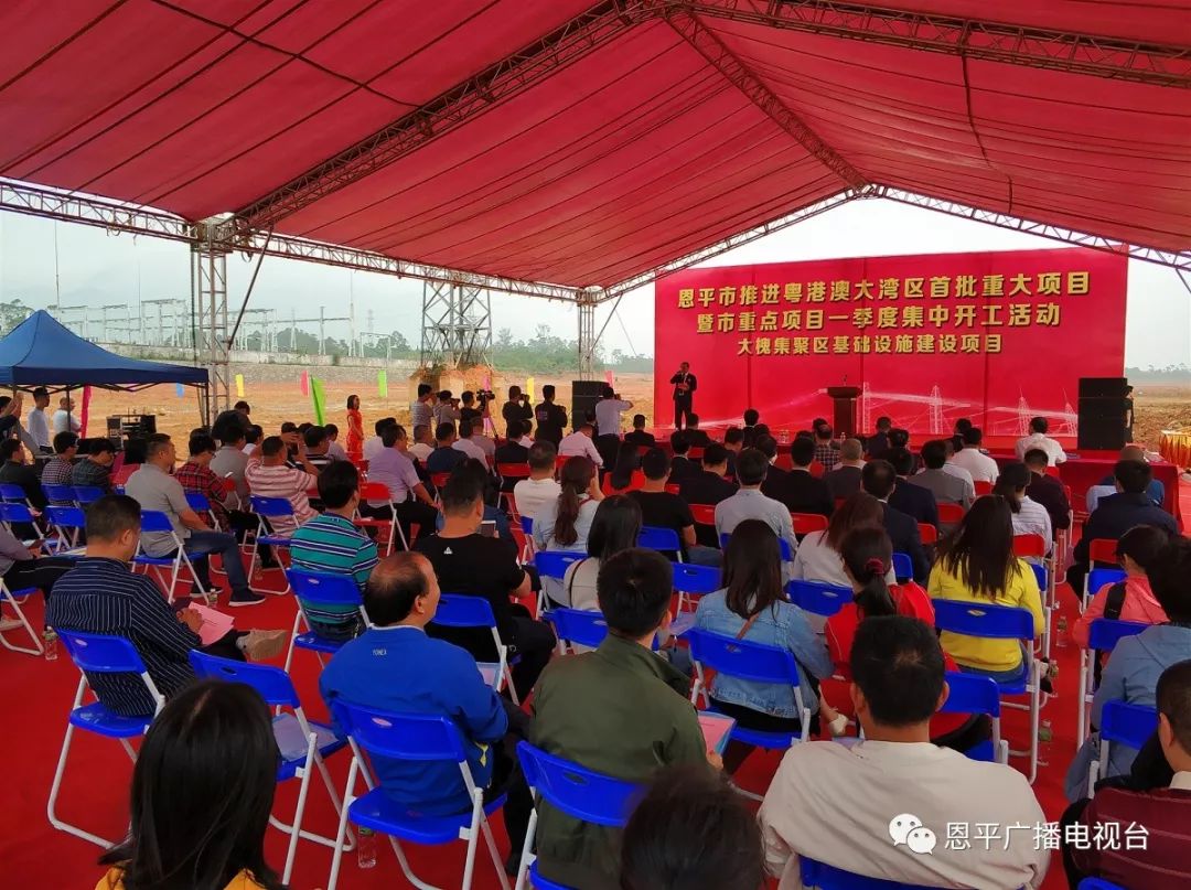 恩平市委常委、副市长郑成博在致辞中表示,恩平市推进粤港澳大湾区首批重大项目暨市重点项目一季度集中开工活动的举行,是恩平市2019年各项基础设施建设和招商引资工作成果的集中展示,是加快推进项目落地的重要举措。恩平市坚持以习近平新时代中国特色社会主义思想为指导,贯彻落实习近平总书记关于粤港澳大湾区建设重要指示精神,以及江门市委、市政府的重大工作部署,抢抓粤港澳大湾区建设历史机遇,坚持以重大项目为抓手,提前谋划重布局,主动对接大湾区,积极开展招商引资和各项基础设施建设,不断夯实全市经济社会高质量发展基础。