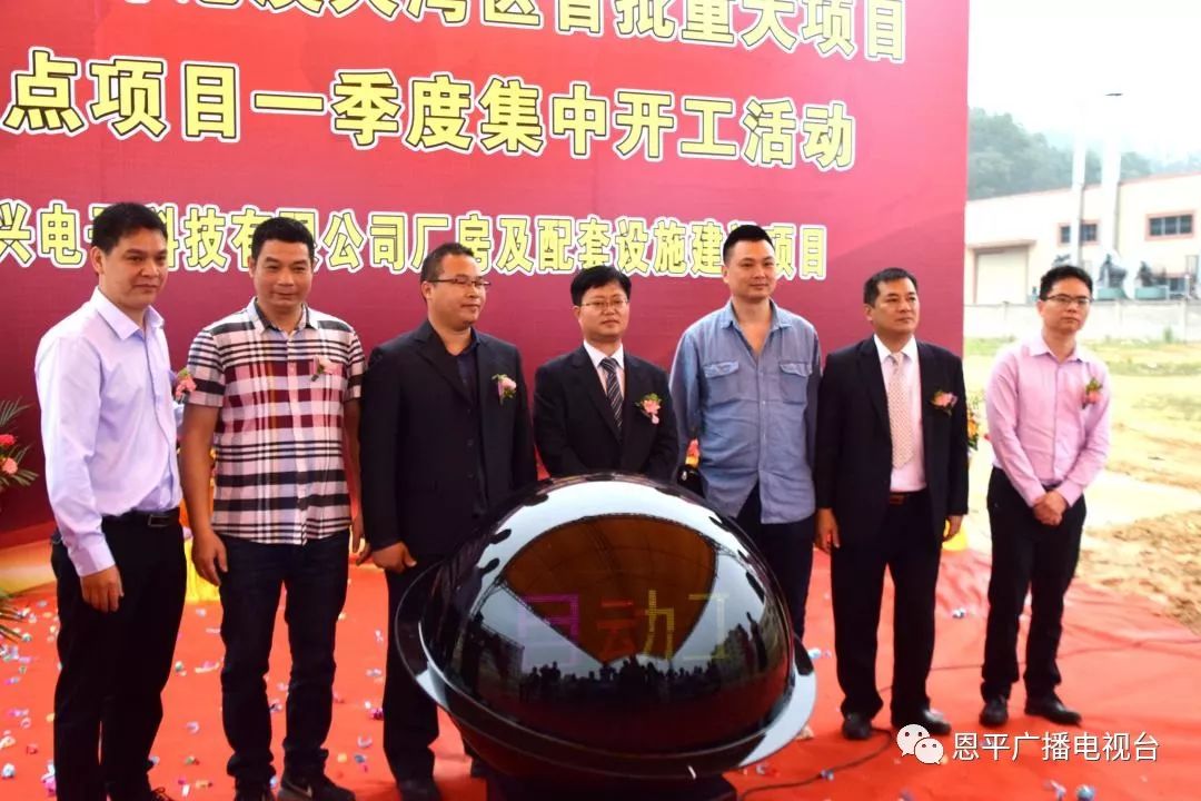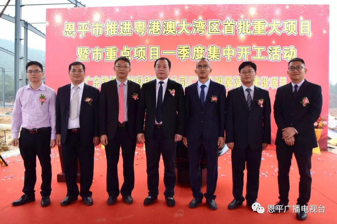 当天的集中开工活动为“1+5”模式,即1个主会场和5个分会场,同时举行动工仪式。这次集中开工项目共6个,总投资7.5亿元。江门市政协副主席费伟东,恩平市委书记谢超武,恩平市政协主席禤缵灵,江门市发展和改革局副局长姚益平,恩平市委常委、副市长郑成博,恩平市人大常委会副主任岑仲平,恩平市副市长岑安林等领导嘉宾出席了恩平工业园大槐产业集聚区主会场的开工活动。