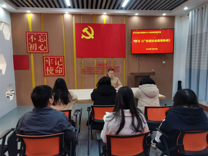 为加强诚信宣传教育,助推本单位的社会诚信建设,1月24日,市医保局组织全体干部职工集中学习《广东省社会信用条例》。