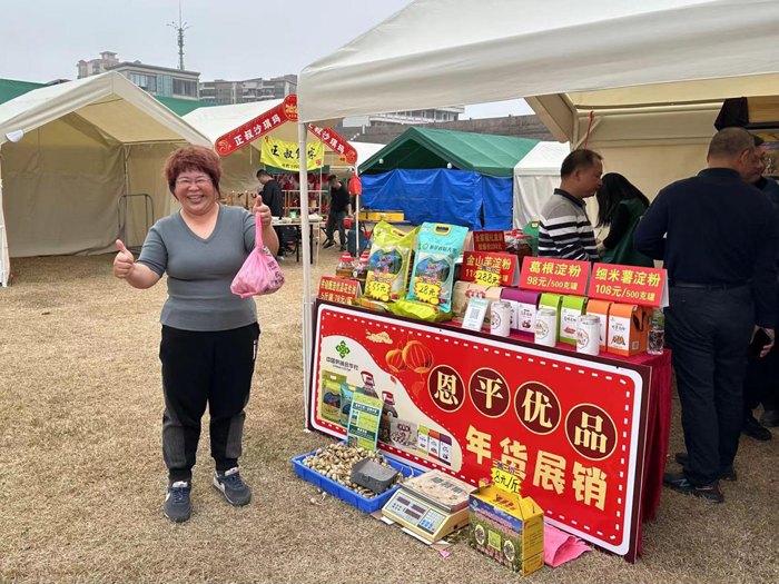 活动现场人潮涌动,不少群众前来选购年花年货,喜迎新春佳节。走进供销年货优选展位,金山芋粉、葛根粉、细米薯粉、恩平大米、花生油、本地茨菇等供销优选产品引人注目。群众驻足展位前,尝薯粉、问价格、备年货、迎新春,现场热闹非凡,年味十足。