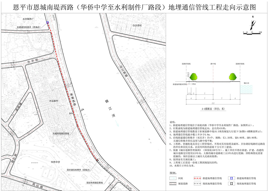 为了进一步推进规划公示制度,充分听取社会各界对恩平市恩城南堤西路(华侨中学至水利制件厂路段)地埋通信管线工程走向的意见和建议,依照《中华人民共和国城乡规划法》规定,现对相关事项公示如下: