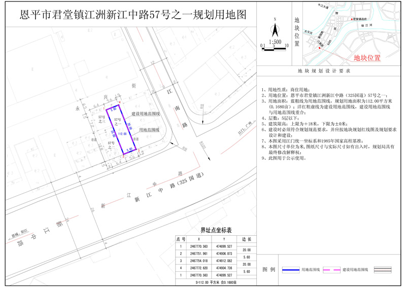 1、项目区位:恩平市君堂镇江洲新江中路(325国道)57号。
