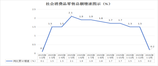 三、商业。1—2月,全市社会消费品零售总额15.89亿元,同比增长0.2%。