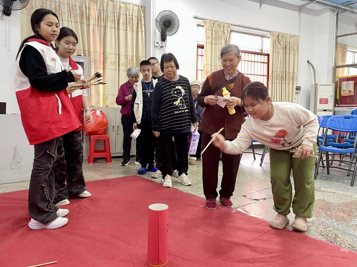 紧随其后的“龙马精神乐游园”活动,将现场变成了欢乐的海洋。社区活动中心内,猜灯谜、套圈、投壶等融合传统年俗的趣味游戏摊位前人头攒动,五彩灯谜考验智慧,套圈与投壶承载期许、传递乐趣,现场欢声笑语不断,满是邻里温情与新春祥和气息。