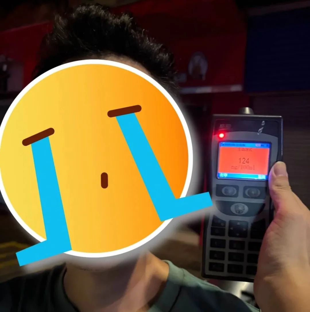 ▲郑某,现场呼气式酒精检测值: 124mg/100ml