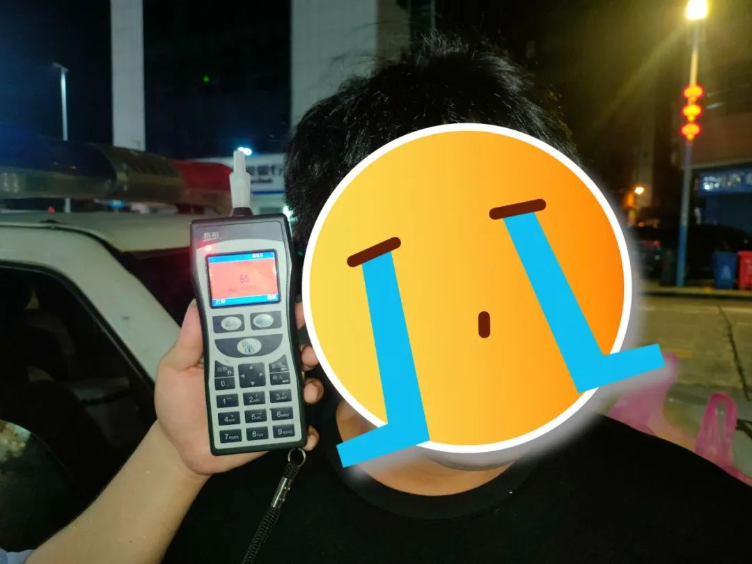 ▲梁某,现场呼气式酒精检测值: 85mg/100ml