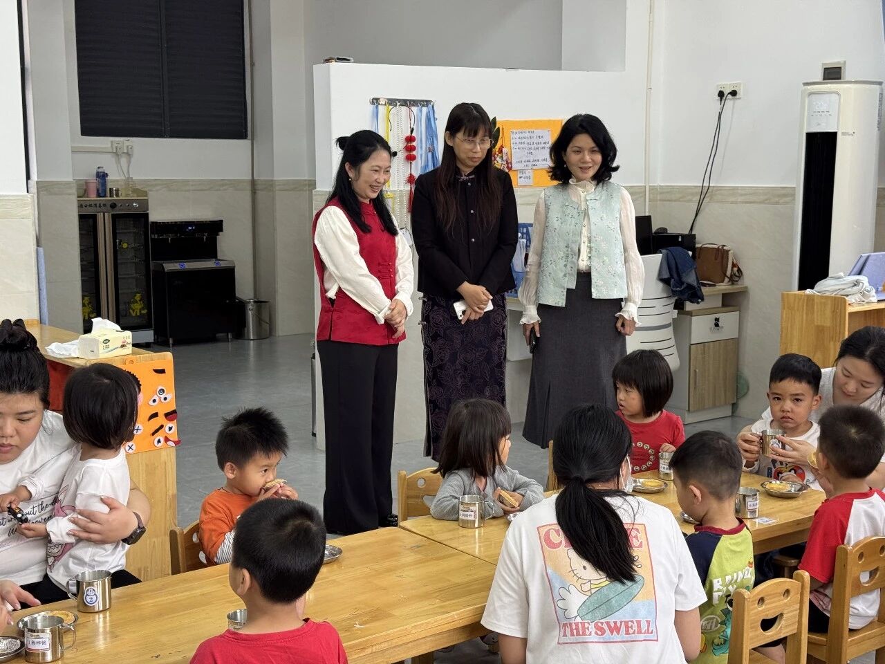 调研首站来到恩平市第一幼儿园东成分园,赵超儿一行实地察看了园内新年布置情况,浓郁的节日氛围与童趣盎然的环境创设相映成趣,充分展现了教师们的巧思与创意,调研组对幼儿园将节日文化与环境育人深度融合的做法给予肯定。在与园方负责人的交流中,赵超儿详细询问了新生入学适应、日常保教开展等情况,了解到园内新生快速融入集体生活,保教工作有序推进,同时认真听取了幼儿园招生工作汇报。据悉,东成分园自2023年开园以来,办学口碑持续提升,招生规模稳步扩大,发展为如今260多名幼儿就读,办园成果得到家长和社会的广泛认可。调研组指出,幼儿园要持续聚焦幼儿成长需求,深耕自然探索特色课程,不断优化办园品质,为幼儿健康快乐成长筑牢基础。