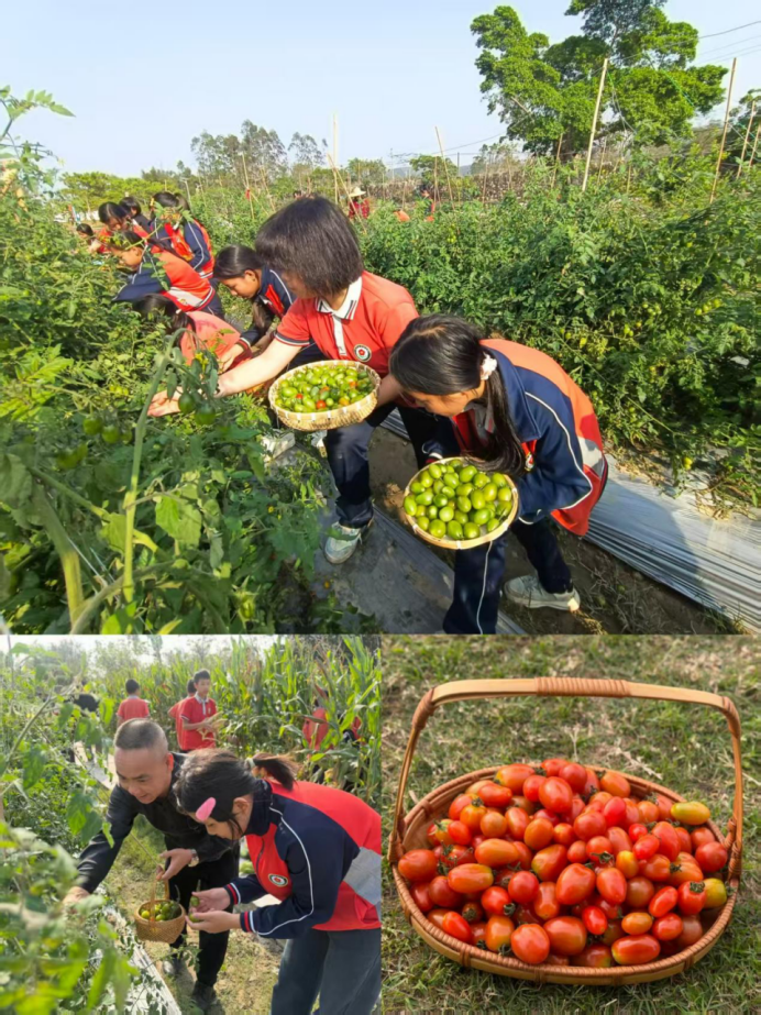 横陂镇中心小学则将植树护绿与特色劳动教育结合,亮点纷呈。植树节当天,学校组织党员教师与少先队员代表走进劳动教育实践基地,共植柠檬树、番石榴树,党队携手种下“希望苗”;同时,学校秋季启动的圣女果种植劳动实践也迎来丰收,学生亲历育种、管护、采摘全周期,在田间劳作和班级绿植角管护中习得技能,真切体会“一分耕耘一分收获”的内涵,让劳动教育既有烟火气,更有育人实效。