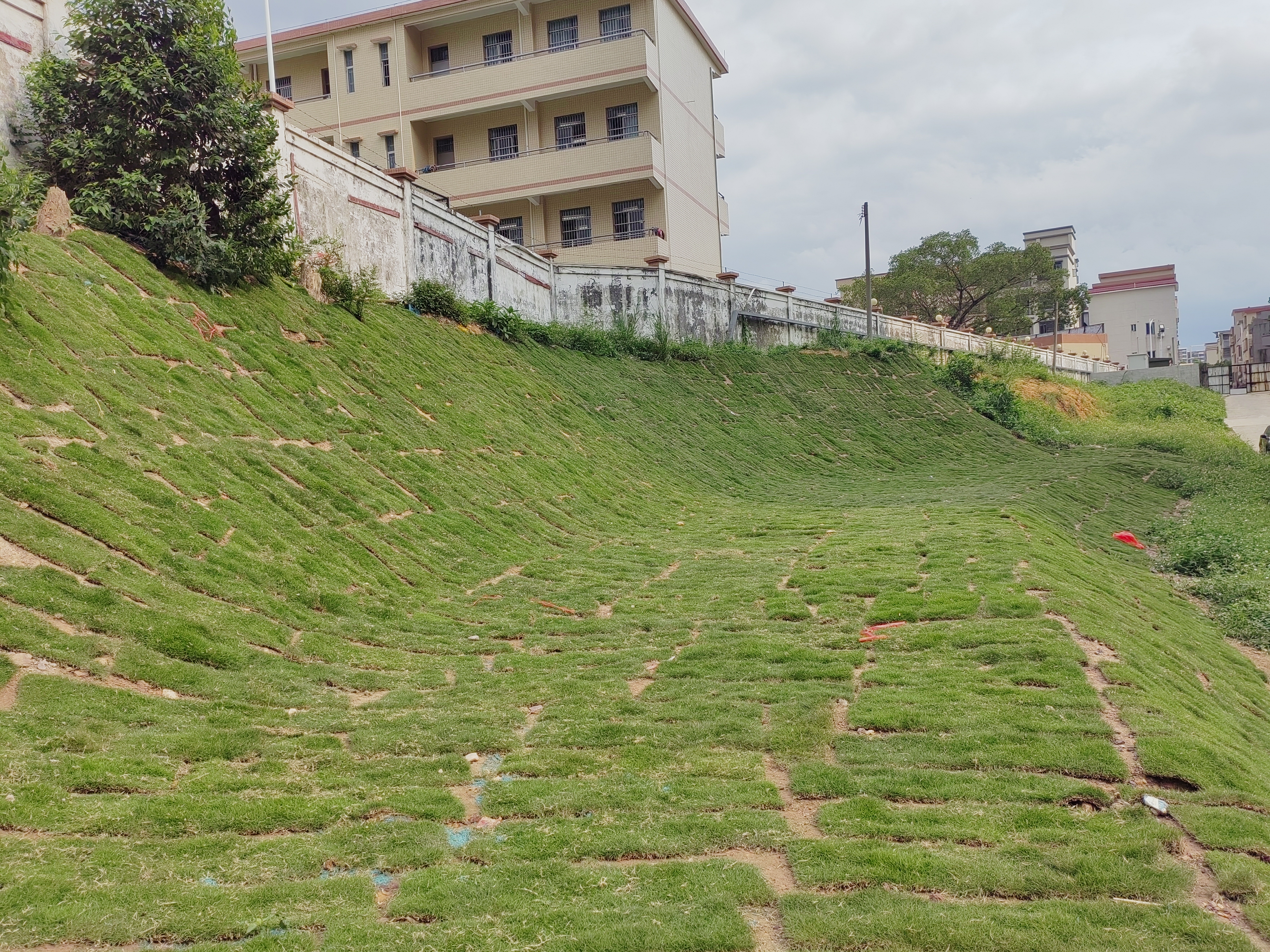 此前,学校在日常安全巡查中发现,学校围墙外、明珠花园内的护土坡长期裸露,雨季易发生土体倾泻、滑坡风险,不仅影响围墙稳固,更对周边师生安全构成潜在威胁。“安全无小事,防患于未然是关键。”