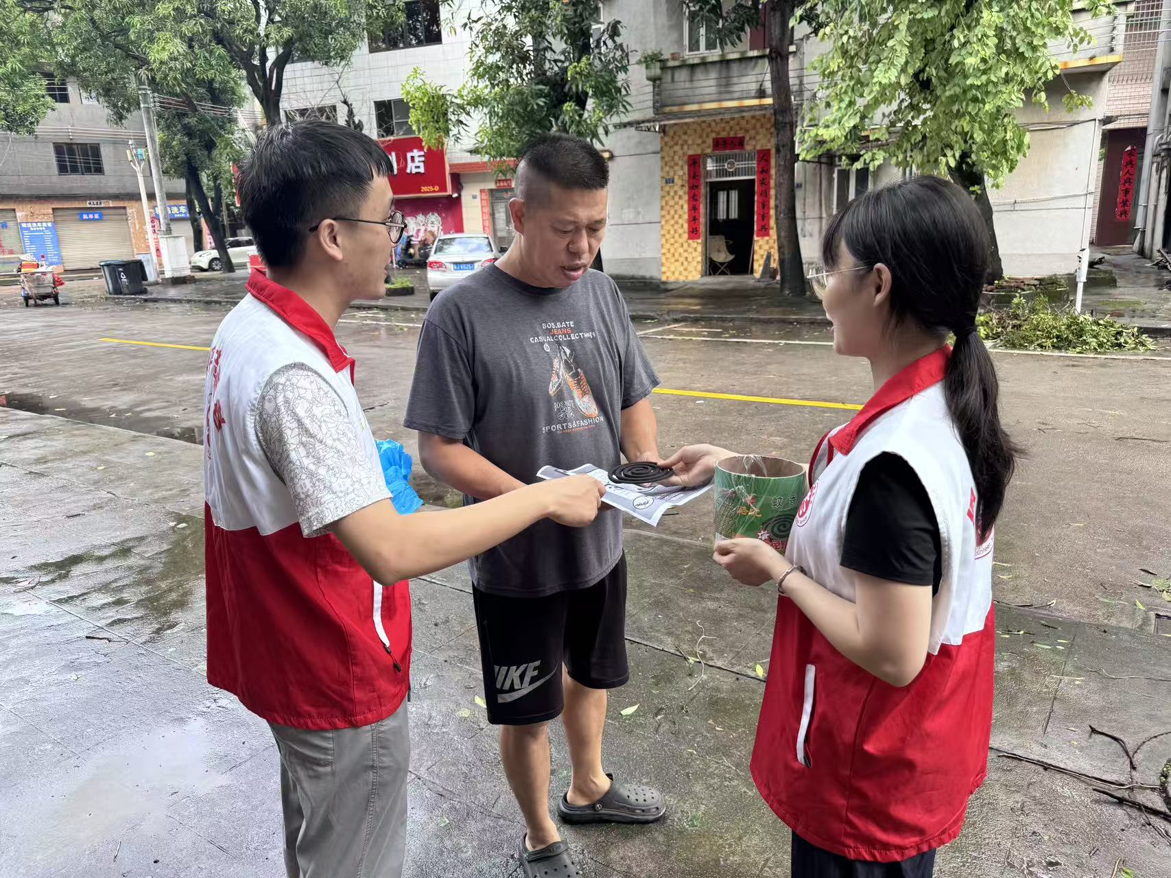 主要领导带队下沉新塘社区开展集中开展爱国卫生灭蚊攻坚行动,落实“双报到双服务”,协助社区居民挨家挨户做好灭蚊宣传工作、清理积水并分发灭蚊烟片,从源头减少蚊虫滋生环境,全面提升辖区蚊媒防控能力,为居民营造健康、安全的生活环境。累计发放防控指南500余份,切实筑牢"基孔肯雅热、登革热"等蚊媒传染病的防控屏障。