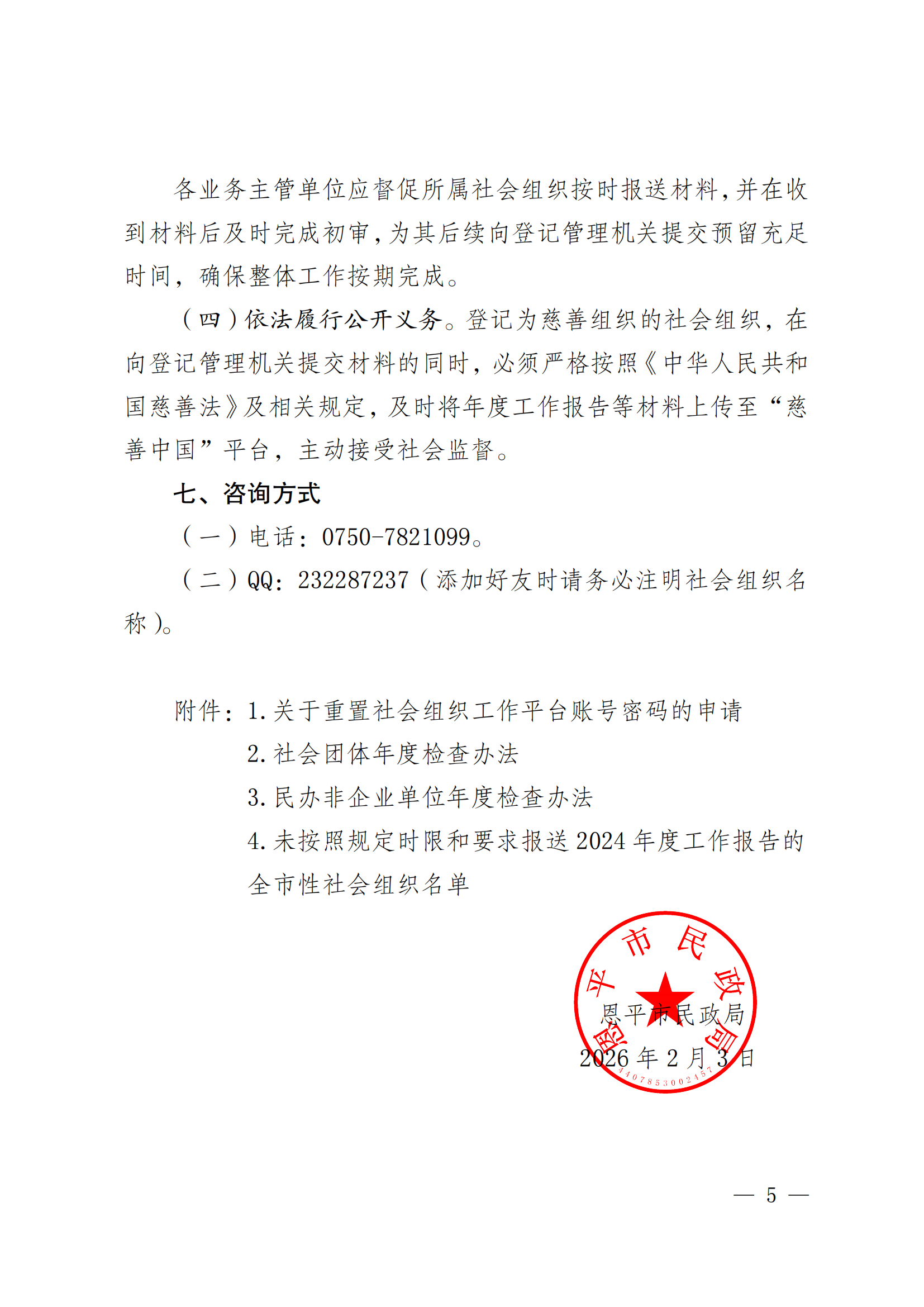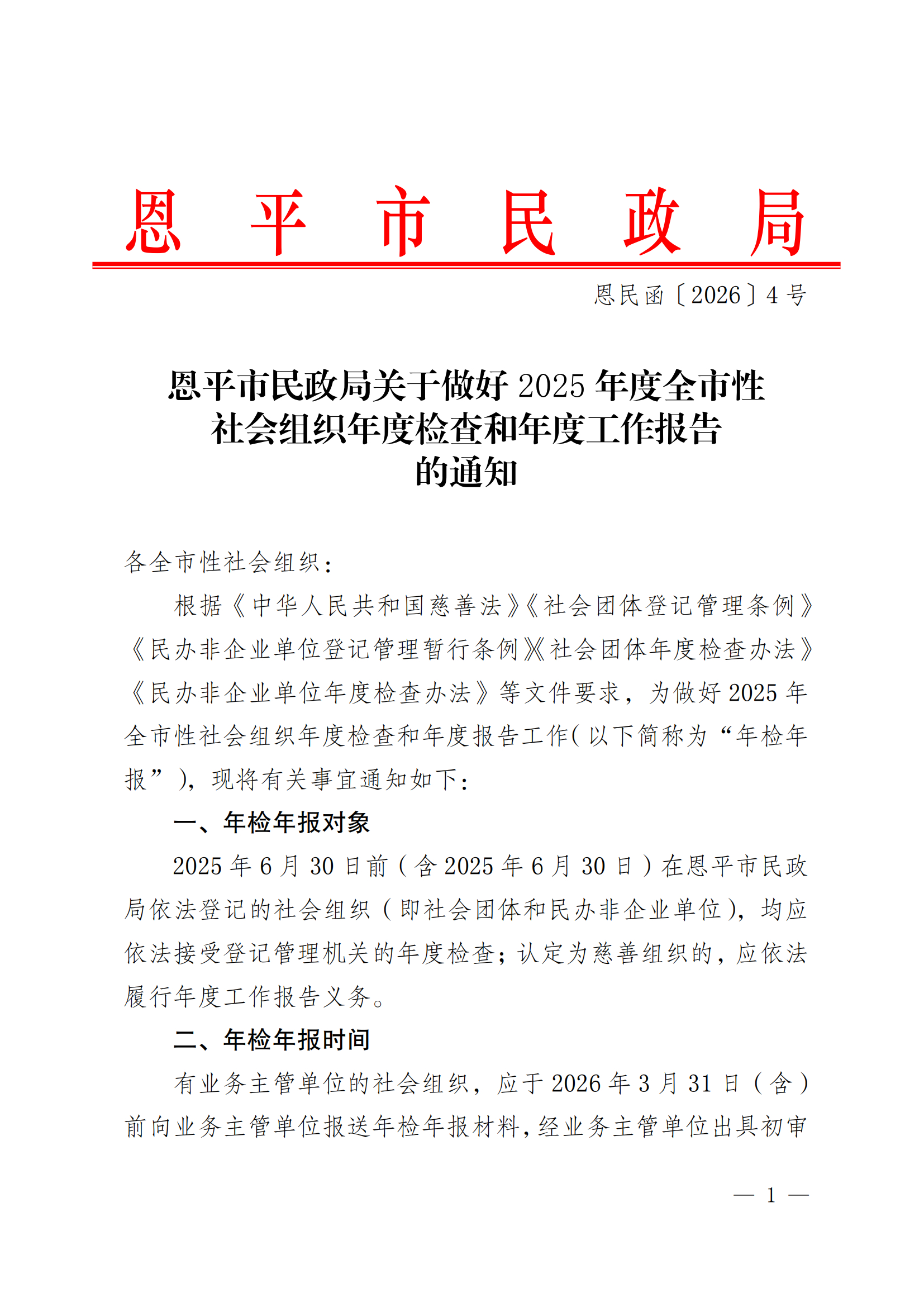 恩平市民政局关于做好2025年度全市性社会组织年度检查和年度工作报告的通知