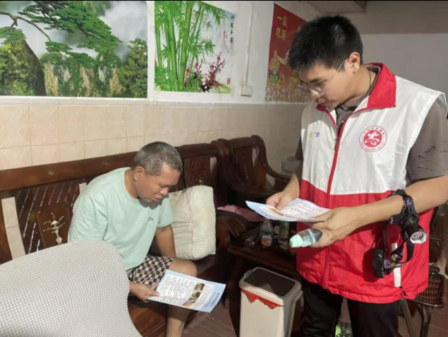 岭南圩确诊首例病例当日,她带着工作人员奔走遍全圩,逐户排查发热人员、入户清理蚊虫孳生地、发放蚊香等物资。白天,她积极入户宣传“防蚊灭蚊是关键”,遇老人听不清,便蹲下握着对方的手耐心讲解;晚上,整理更新台账,细化防控方案。面对不愿配合清理积水的村民,她主动上门,讲清基孔肯雅热病源头和清理蚊虫孳生地的重要性,动员群众齐动手消除隐患。