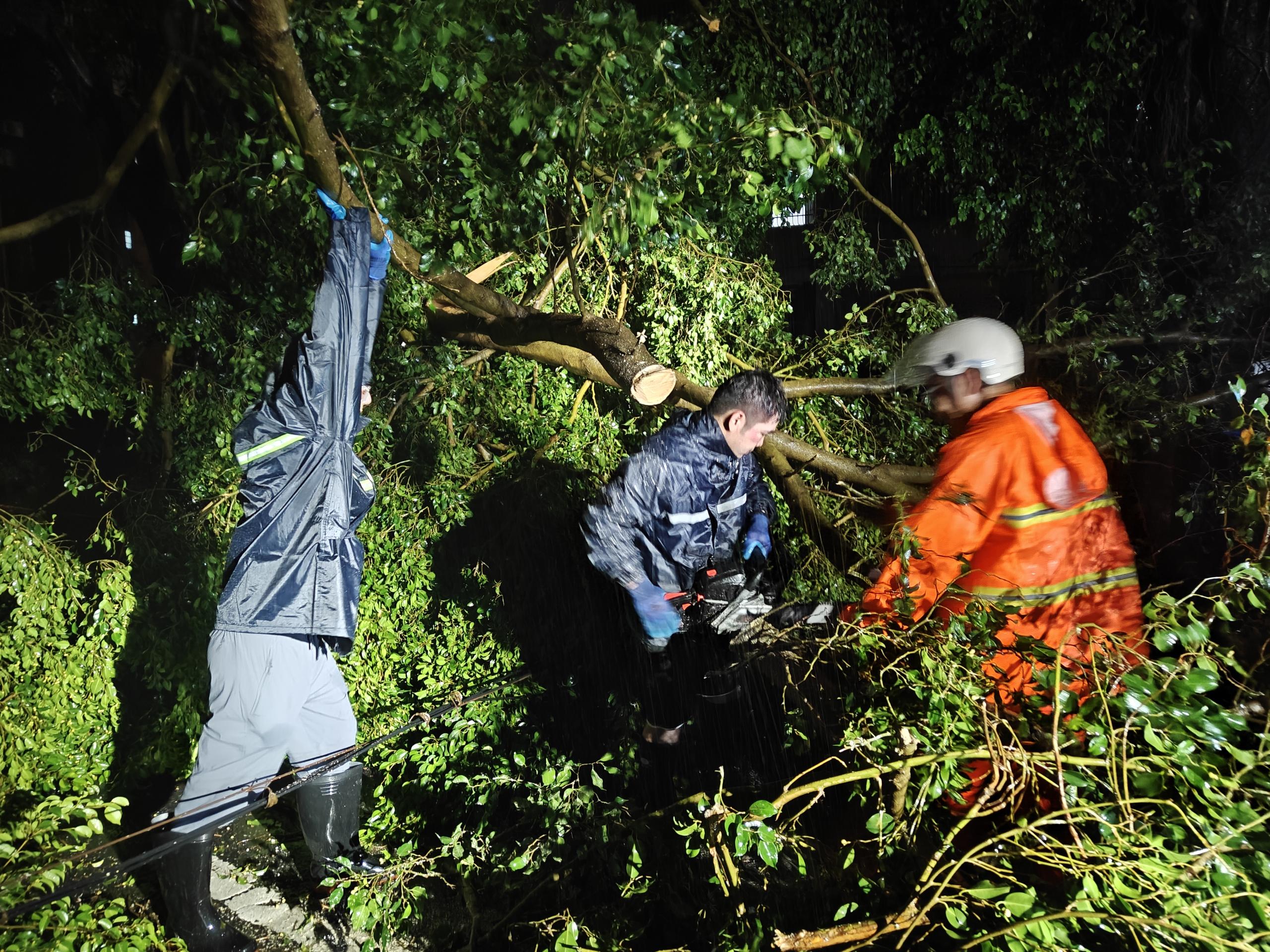 9月24日晚,为保障辖区道路通行安全与群众生产生活秩序,恩平市农业农村局副局长岑鲁宁带领局应急救援队赶赴恩城街道,全力支援开展树木清障工作。