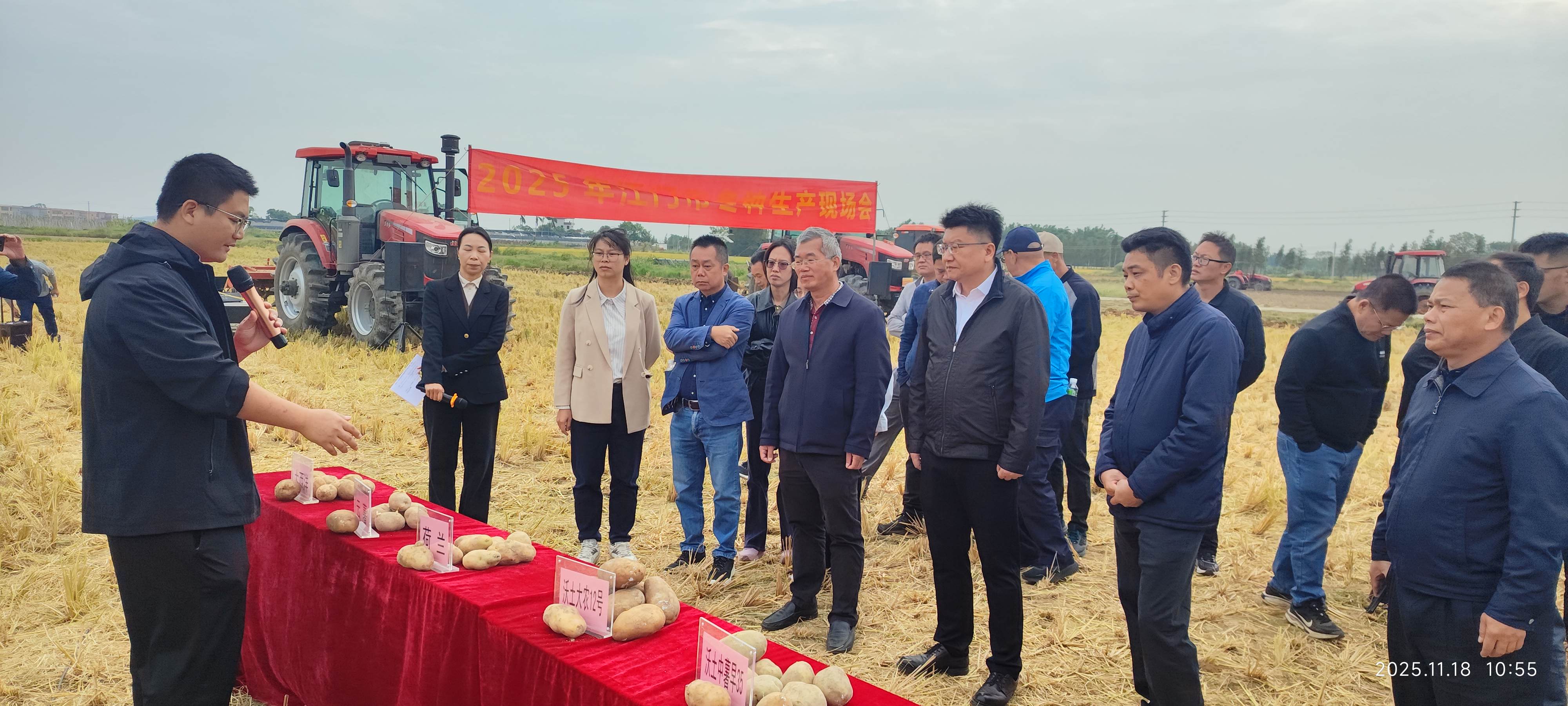 近日,江门市农业农村局在恩平市牛江镇马龙塘村委会举办“江门市2025年冬种生产现场会”,部署冬种生产工作,展示冬种新品种和主推技术。在会上,重点对恩平市主要马铃薯种植品种进行介绍,对水稻秸秆机械化回收、农田深耕机、马铃薯布管覆膜一体机等新型机械进行现场展示。