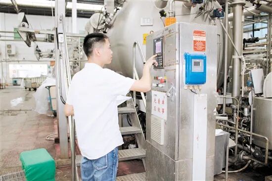 在企业车间,各种机器正在快速运作。记者看到,企业大多数的工序已经实现机械化、自动化,只有少量工人在岗位拉动布条,将长长的布条送到机器进行染色。“我们的主要业务是织布和印染,每天印染的布料大约可以制作40万件衣服。”吴奋醒说。