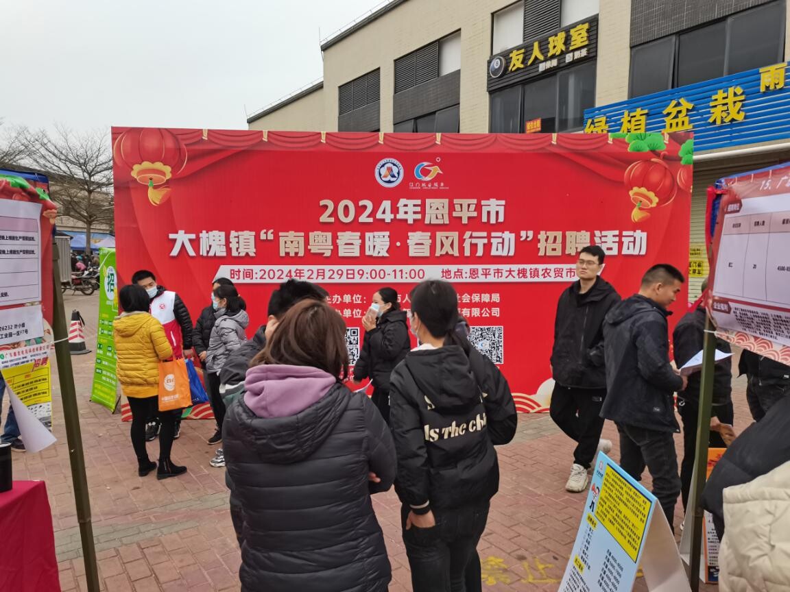 2月26日,恩平市人力资源和社会保障局在横陂镇举办2024年恩平市南粤春暖暨春风行动现场招聘会横陂专场,招聘会进场招聘企业32家,共提供就业岗位245个,进场求职人员300余人,初步接洽即达成就业意向183人。2月28日的沙湖镇专场招聘会,参加企业23家,提供岗位202个,进场求职人员190人次,初步接洽即达成就业意向56人。2月29日举办的大槐镇招聘会,参加企业49家,提供招聘岗位334个,进场人数643人次,初步达成意向202人。而在此前的2月24日,大槐镇已经举办了一场招聘活动,企业和求职者双方对此反应激烈。3月13日,恩平市还将在东成镇举办一场招聘会,趁热打铁在全社会营造更好的招聘就业氛围。