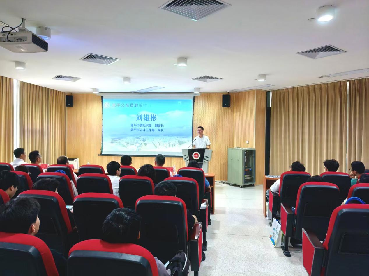 恩平市人才工作局相关负责人现场作公务员招录政策专题推介,围绕恩平市公务员招录计划、报考条件、岗位优势、培养路径、待遇保障等内容进行详细解读,重点介绍面向高校毕业生的招录倾斜政策与基层成长通道,鼓励学子报考家乡公职岗位,以青春才干服务恩平建设。
