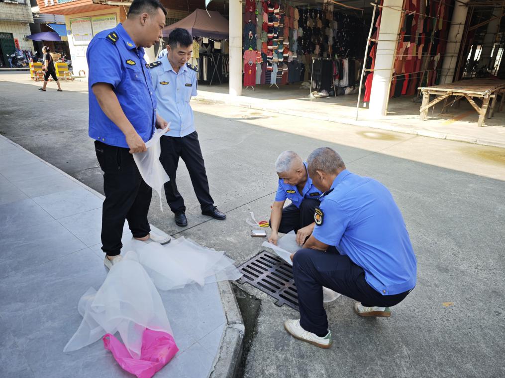 市监局联合城管局人员对农贸市场下水口安装防蚊网