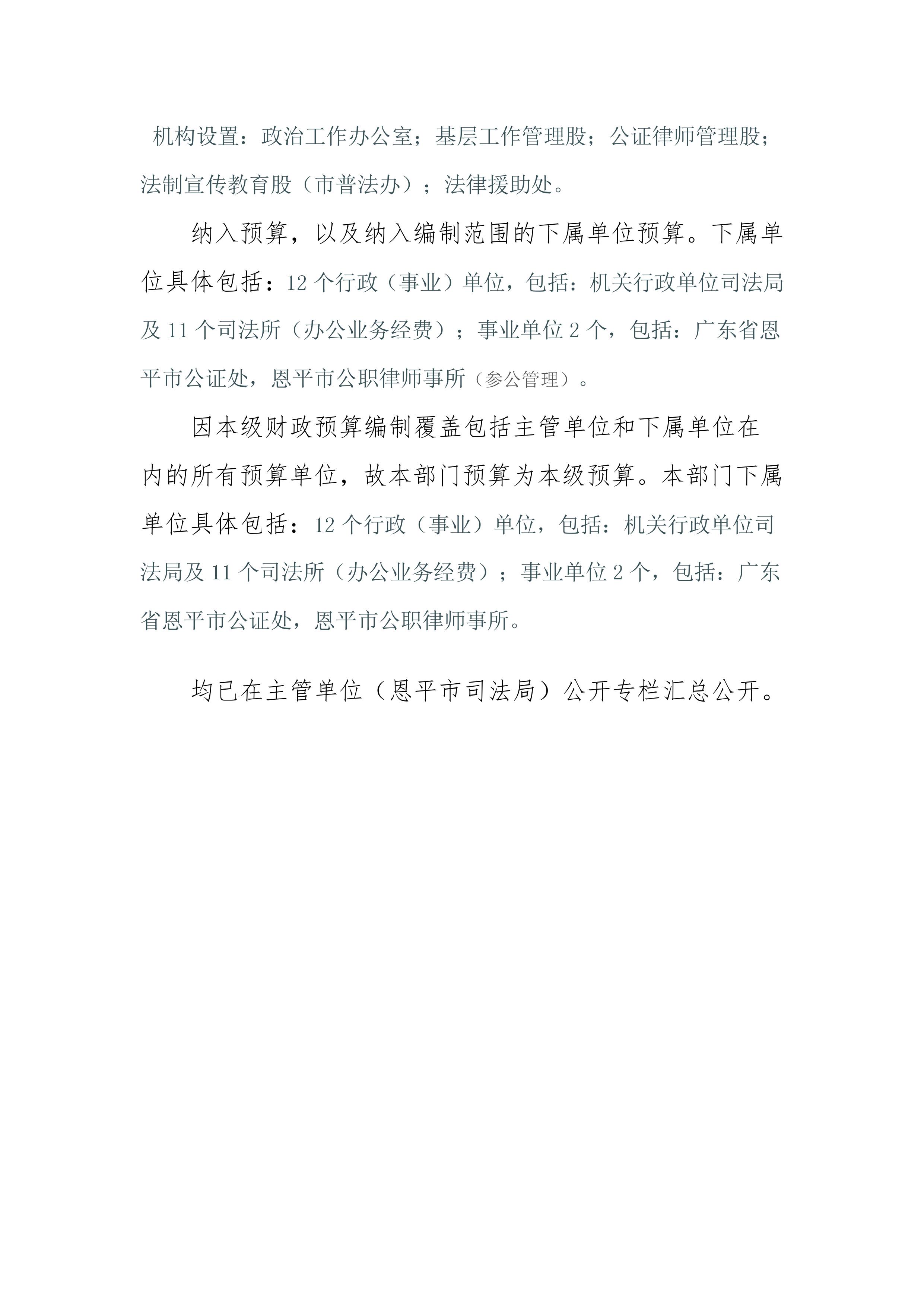 当前位置: 首页 > 政务公开 > 政府信息公开平台 > 恩平市司法局 > 部门预决算