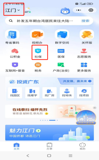 3.选择主页“热门服务”中的“社保”模块;