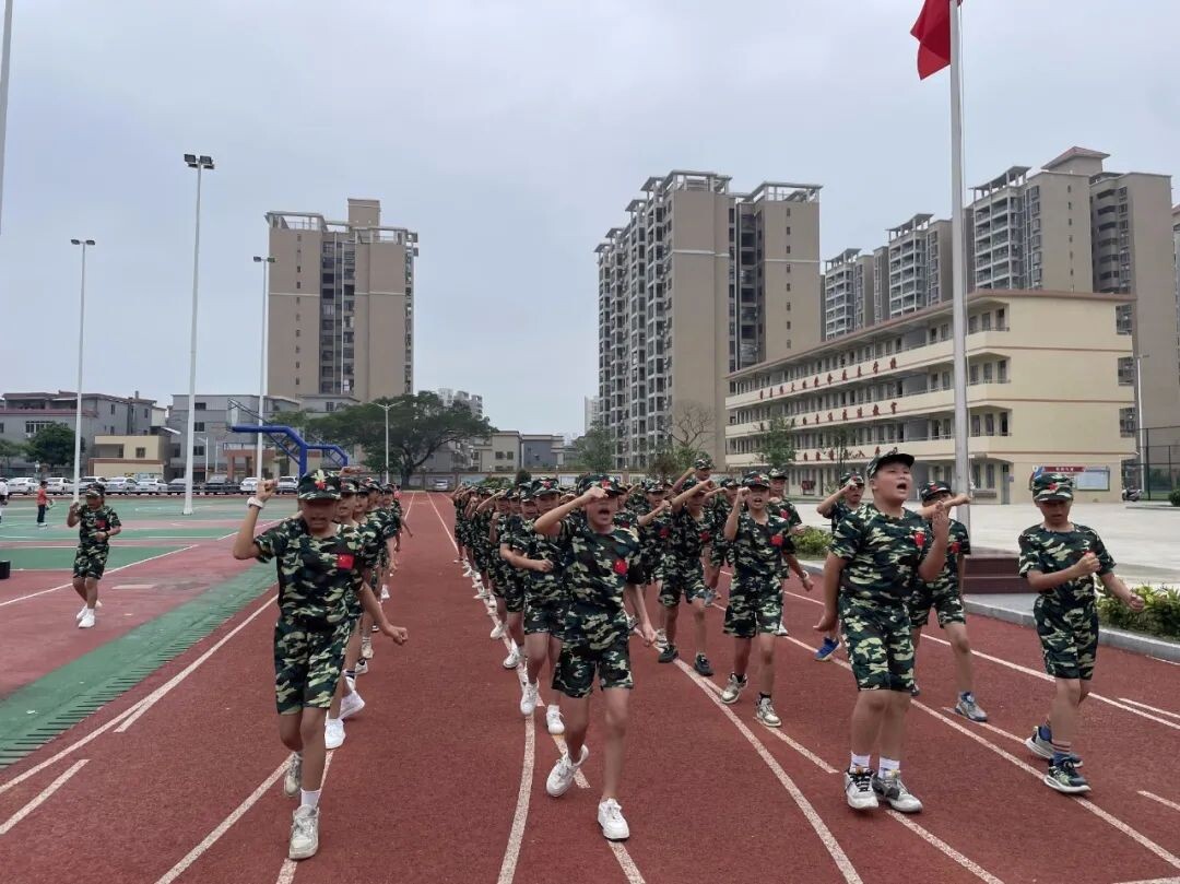 “一、二、一……一、二、三、四。”同学们喊着嘹亮的口号,排着整齐的队形出列,各班级气势高昂、步调一致,孩子们精神饱满、富有朝气。学生们本次展示的是军体拳十六式的前十式,弓步冲拳、穿喉弹踢、马步横打、内拨下勾、交错侧踹、外格内勾、反击勾踢、转身别臂、虚步砍肋、弹裆顶肘……在操场上,同学们整齐喊出招式,一面拳打一边脚踢,小小的身板激发出强大的能力,一招一式有板有眼,颇具军人气质,充分展示出新时代少年的精神面貌。有的班级还别出心裁地穿上迷彩服,摇旗呐喊,展现出与众不同的创意。