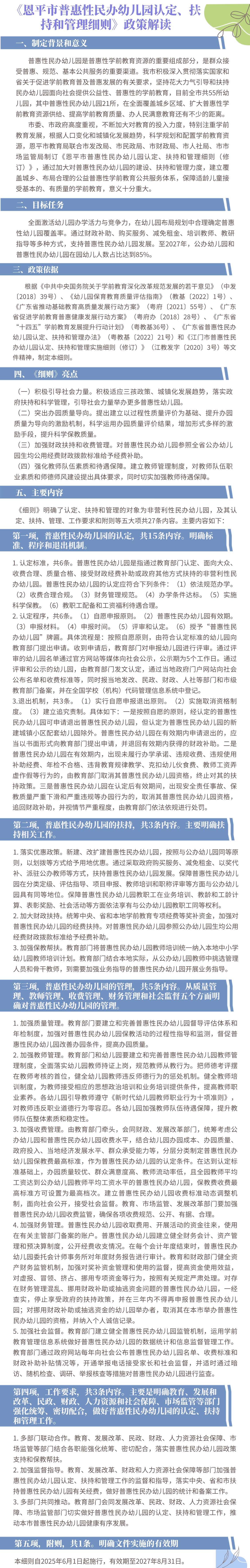 文本解读:《恩平市普惠性民办幼儿园认定、扶持和管理细则》