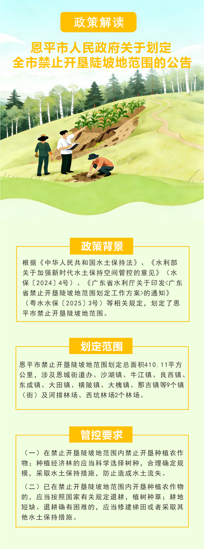 政策原文:恩平市人民政府关于划定全市禁止开垦陡坡地范围的公告