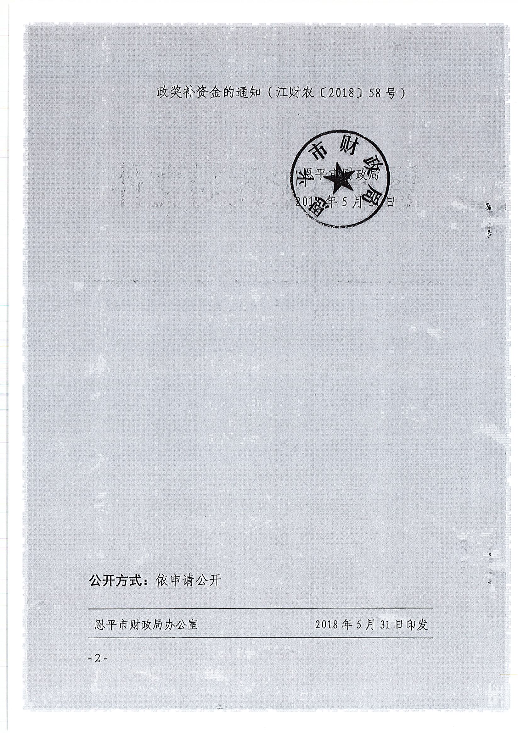 关于下达2018年村级公益事业一事一议市级财政奖补资金的通知