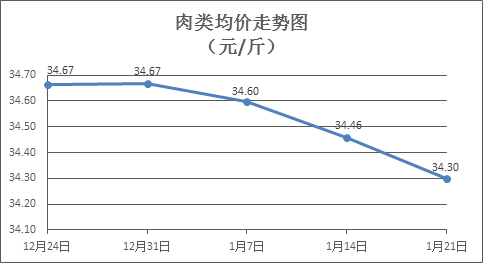 肉类商品价格微幅下降。上周所监测的8种肉类商品价格波动情况为1涨5跌2平,综合零售均价为34.30元/斤,环比下降0.46%。其中:排骨、精瘦肉、有皮上肉、牛肉、带骨羊肉零售均价分别为每斤29.20元、17.98元、14.36元、53.52元、44.42元,环比分别上涨0.07%、下降1.48%、持平、下降0.22%、下降0.60%。