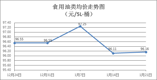 食用油类商品价格稳中略涨。上周所监测的9种食用油(5L装)商品价格波动情况为3涨2跌4平,综合零售均价为96.16元/桶,环比上涨0.05%。其中:金龙鱼调和油、玉米油零售均价分别为每桶70.94元、75.45元,环比分别上涨0.32%、上涨0.32%。