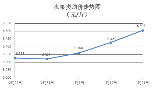 水果类商品价格窄幅盘升。上周所监测的6种水果商品价格波动情况为3涨2跌1平,综合零售均价为6.505元/斤,环比上涨1.22%。其中橙子、葡萄、梨零售均价分别为每斤5.19元、14.35元、6.17元,环比分别下降2.26%、上涨3.46%、上涨2.49%。