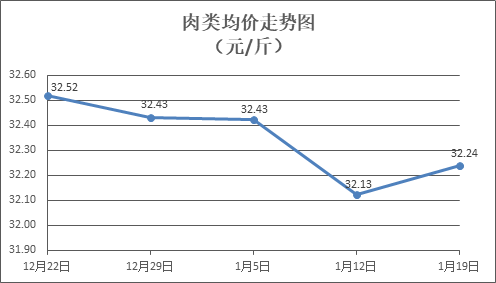 肉类商品价格微幅上涨。所监测的8种肉类商品价格波动情况为7涨1跌,综合零售均价为每斤32.24元,环比上涨0.35%。其中:排骨、精瘦肉、肋条肉、牛肉、带骨羊肉零售均价分别为每斤31.41元、19.84元、16.79元、45.66元、41.33元,环比分别上涨0.83%、上涨0.35%、下降0.30%、上涨0.29%、上涨0.22%。