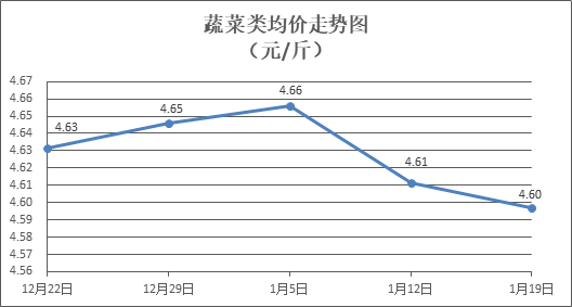 据本市21家农贸市场监测数据显示,上周(1月13日至1月19日)市场上各类“菜篮子”商品供应充足,所监测的7大类“菜篮子”商品价格总体表现为3涨4跌。其中:粮油类、蛋类商品价格基本平稳,肉类、水产类商品价格总体微涨,家禽类、蔬果类商品价格以降为主。