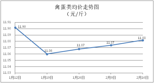 禽蛋类商品价格稳中有涨。所监测的5种禽蛋类商品价格波动情况为2涨1跌2平,综合零售均价为每斤11.88元,环比上涨0.07%。其中:白条鸡、白条鸭零售均价分别为每斤20.68元、15.30元,环比分别下降0.29%、持平;鸡蛋、鸭蛋零售均价分别为每斤6.64元、7.65元,环比分别上涨0.30%、上涨1.06%。
