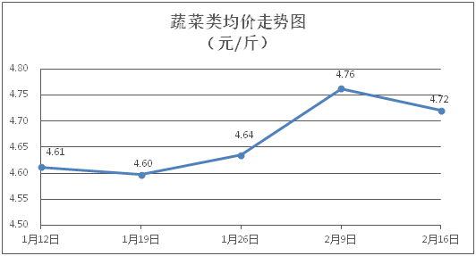 据本市21家农贸市场监测数据显示,上周(2月10日至2月16日)市场上各类“菜篮子”商品供应充足,所监测的7大类“菜篮子”商品价格环比总体表现为2涨4跌1平。其中:粮油类商品价格基本平稳,肉禽类、蔬果类、水产类商品价格总体略降,蛋类价格稳中略涨。