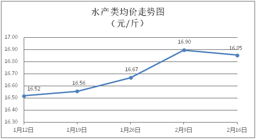 水产类商品价格窄幅盘降。所监测的9种水产商品价格波动情况为2涨5跌2平,综合均价为每斤16.85元,环比下降0.25%。其中:草鱼、鲫鱼、鳙鱼、罗非鱼、基围虾零售均价分别为每斤11.20元、14.46元、10.83元、9.29元、30.48元,环比分别下降0.80%、下降0.21%、下降1.01%、下降0.21%、下降1.10%。