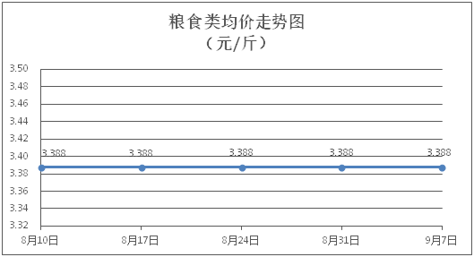 粮食类商品价格保持稳定。所监测的4种粮食类商品价格均持平,综合零售均价为每斤3.388元。其中:丝苗米、面粉零售均价分别为每斤3.51元、3.39元,环比均持平。