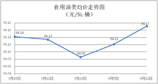 食用油类商品价格稳中微涨。所监测的食用油(5L装)商品价格波动情况为3涨6平,综合零售均价为每桶94.17元,环比上涨0.05%。其中:鲁花花生油、金龙鱼调和油零售均价分别为每桶156.22元、70.13元,环比分别上涨0.13%、持平。