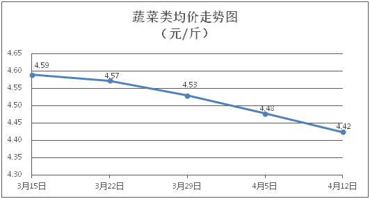 据本市21家农贸市场监测数据显示,上周(4月6日至4月12日)市场上各类“菜篮子”商品供应充足,所监测的7大类“菜篮子”商品价格与上周相比(环比)总体表现为1涨5跌1平。其中:粮油类商品价格稳中微涨,肉禽蛋类、蔬果类、水产类商品价格总体略降。