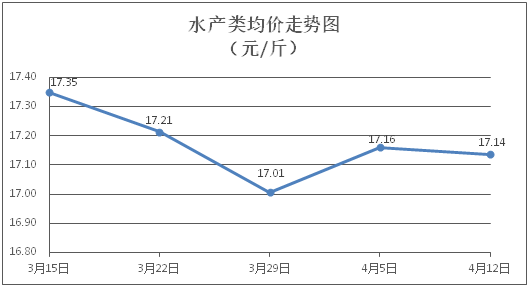 水产类商品价格升降互现。所监测的水产商品价格波动情况为3涨4跌2平,综合均价为每斤17.14元,环比下降0.14%。其中:鲫鱼、鳙鱼、罗非鱼、基围虾零售均价分别为每斤14.15元、11.00元、8.60元、28.17元,环比分别下降0.14%、持平、下降0.69%、下降2.26%。